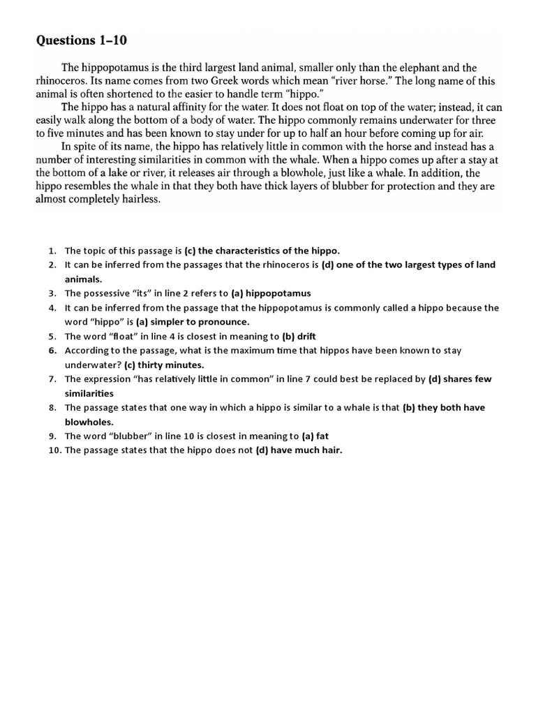 Soal Toefl Reading Hippopotamus Dan Jawabannya / Soal Toefl Utk Latihan Kelas Xii Pdfcoffee Com - Bisa minta soal dan jawabannya gan ??. Leading berfungsi sebagai kata sifat bukan kata kerja jadi sangat jelas jawabannya ialah. Tips jawab soal pronoun pada toefl reading / tips toefl reading dengan soal toefl dan pembahasannya ini untuk kamu yang ingin belajar toefl dan akan tes. Jika dalam pilihan jawaban terdapat lebih dari 1 sinonim, sesuaikan makna jawaban dengan konteks kalimat. Contoh soal toefl reading comprehension. Bentuk soal tes toefl :